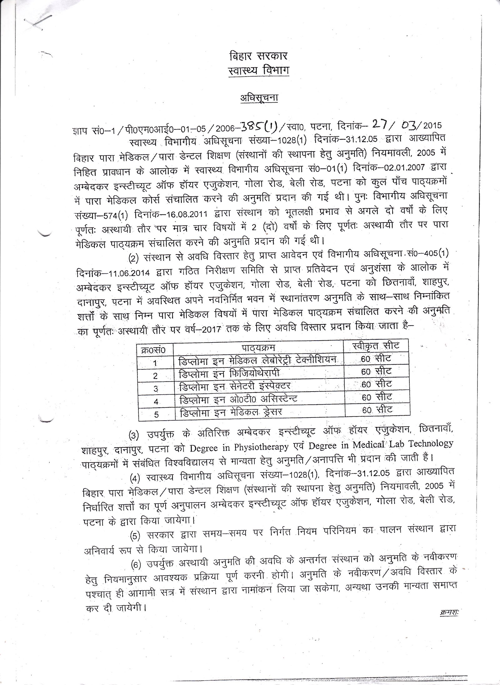 Permanently Recognized By : Deptt. of Health, Govt. of Bihar.